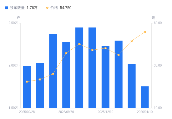 近一年(2025年2月28日至2026年1月10日)◆◁▽,华正新材A股股东户数从1•.99万户…■,减低至1△▷.76万户▷■,降幅11.83%,区间股价上涨99.38%。