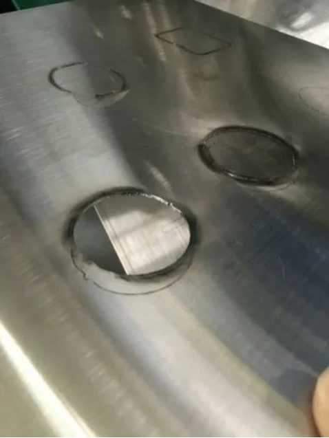 激光切割●☆。激光机使用普通304 不锈钢的参数设定对复合板进行试制,发现使用一次切割无法完全穿透板材■=☆,而使用二次切割虽能穿透板材,但切口边缘出现较多的毛刺以及边缘发黑等外观不良问题,笔者认为原因可能有两点:对于不同金属板材,激光机所使用的参数有所区别◁◆▼,而不锈钢复合板由两种不同金属所组成,因此无论使用怎样的基材或面材的参数○▷,均无法达到较良好的切割效果;复合板中间的高分子材料粘接层,会对激光的光束产生一定的散射•=,影响光束精度,导致切口边缘产生毛刺及发黑等问题◆▼…,试制样品如图6 所示。
