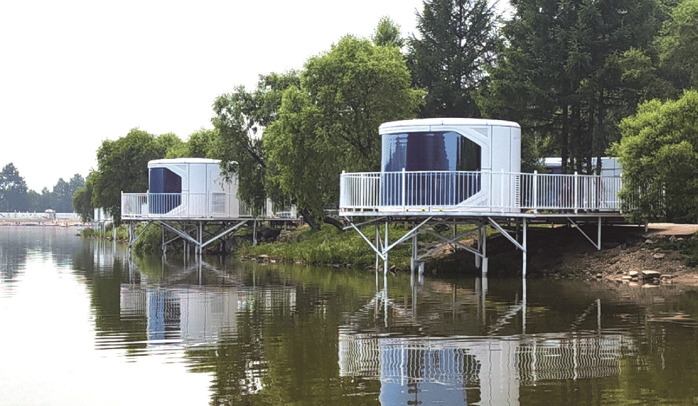 在科技感与舒适性方面,太空舱也表现出色。外观多采用流线型曲面设计,搭配全景玻璃、LED 氛围灯▲☆•,视觉上贴近真正的太空舱…▲…;内部空间虽紧凑(常见 15 - 30㎡),但功能齐全▽=★,标配独立卫浴、迷你厨房、智能家电(如语音控制、温控系统),部分款还配备星空顶、观景露台…-▽,兼顾实用性与体验感◇。此外,太空舱还具备强环境适应性,主体多采用钢结构 + 保温复合板=,抗风等级可达 8 - 10 级,耐寒耐热性优于普通集成房屋,能适应山地、海边、高原等复杂环境,且无需复杂地基,仅需简单水泥基座或钢结构支架即可落地,对场地破坏小。