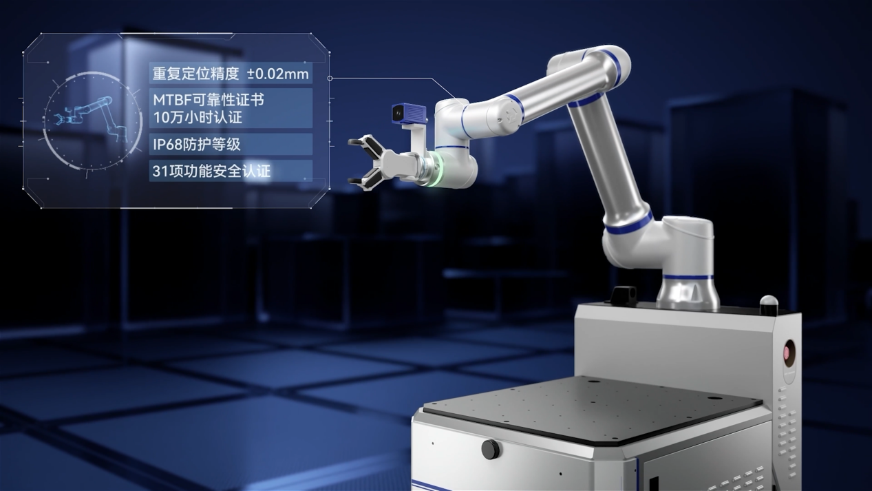 高可靠执行单元(手):协作机器人产品覆盖3~30KG宽负载范围,具备业内首个MTBF 10万小时测试认证,同时满足31项功能安全要求,全面保障人机协作场景的安全与稳定。